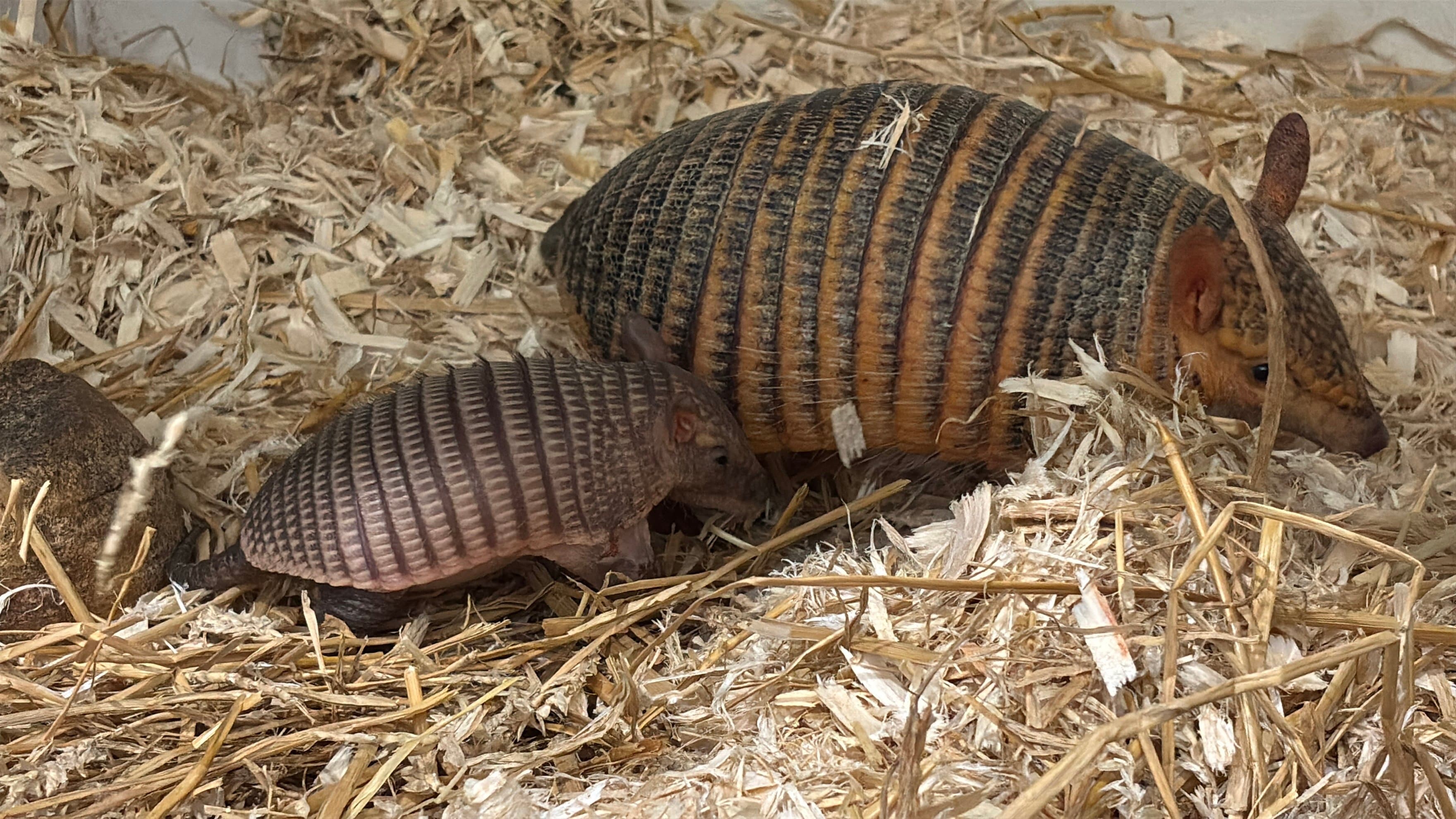 The Museum of Science participates in several SSPs, including cotton-top tamarins, radiated tortoises, lesser Madagascar hedgehog tenrecs, prehensile-tailed skinks, prehensile-tailed porcupines, and screaming hairy armadillos. Our armadillos are the only species we are currently breeding, and this summer we celebrated a success when we welcomed baby Backpack, the offspring of our long-term resident armadillos, Dora and Diego!